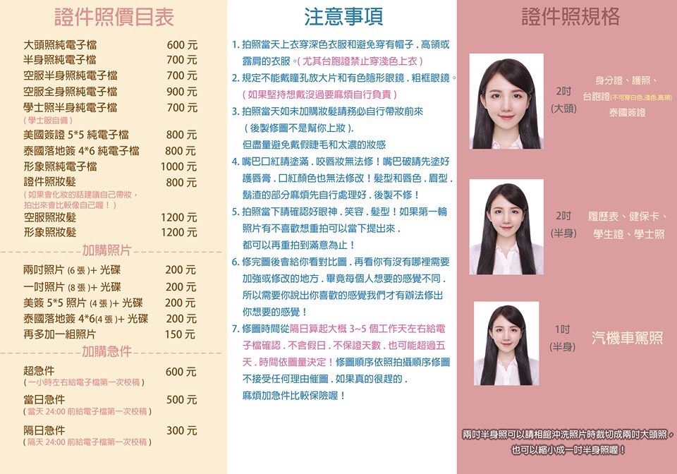 他們其實服務範圍挺廣的,證件照/空服面試應試照/最美畢業學士照/專業形象照/美肌證件照大頭照/孕婦寫真/全家福/婚紗攝影 都有